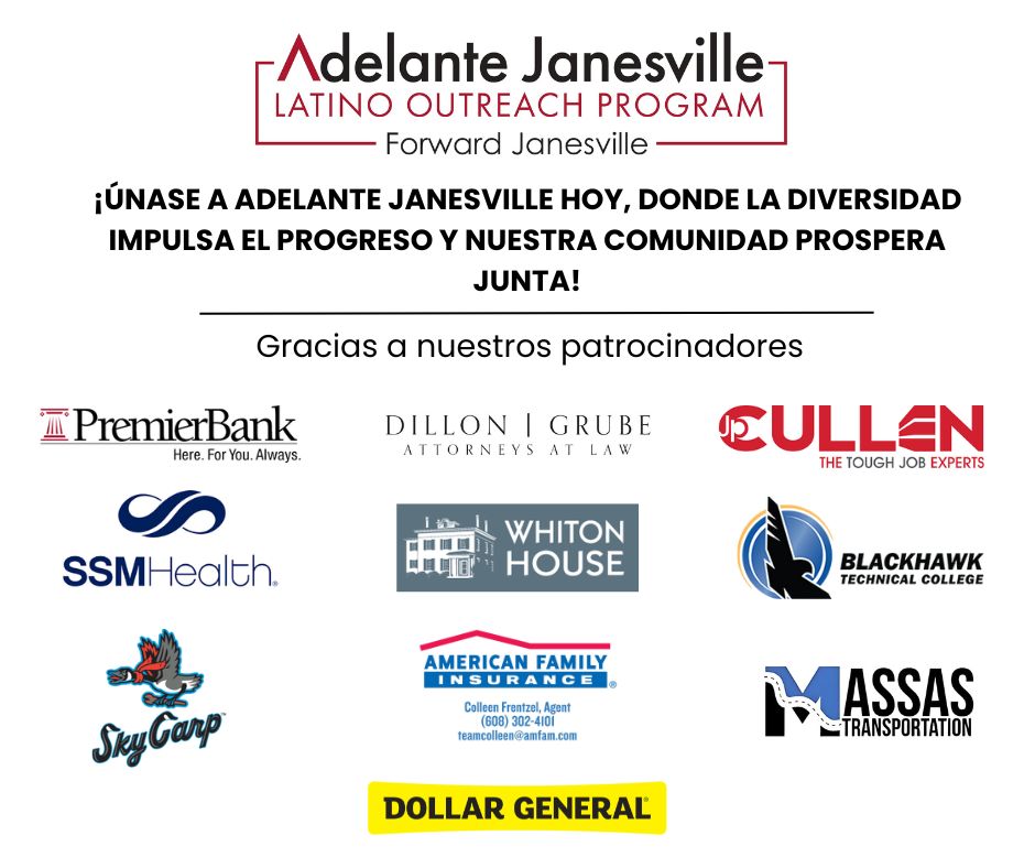 Forward Janesville, a través de su fundación 501(c)(3) Forward Foundation, lanzó Adelante Janesville en 2023 con el propósito de explorar formas en las que la organización pueda brindar un mejor apoyo a los emprendedores latinos y fortalecer el desarrollo laboral entre los principales empleadores de la fuerza laboral latina en el condado de Rock. Estos emprendedores representan la población minoritaria de más rápido crecimiento tanto en Janesville como en el condado de Rock.