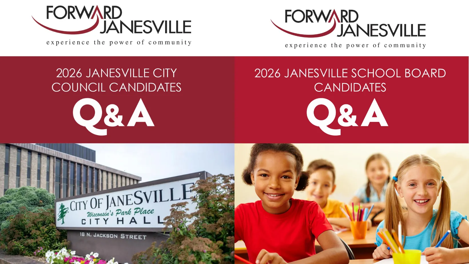 Local elections are right around the corner, and voters in Janesville will soon help shape the future of their community at the ballot box on Tuesday, April 7. To help voters make informed decisions, Forward Janesville has published two new candidate Question & Answer guides featuring responses directly from those seeking office.
