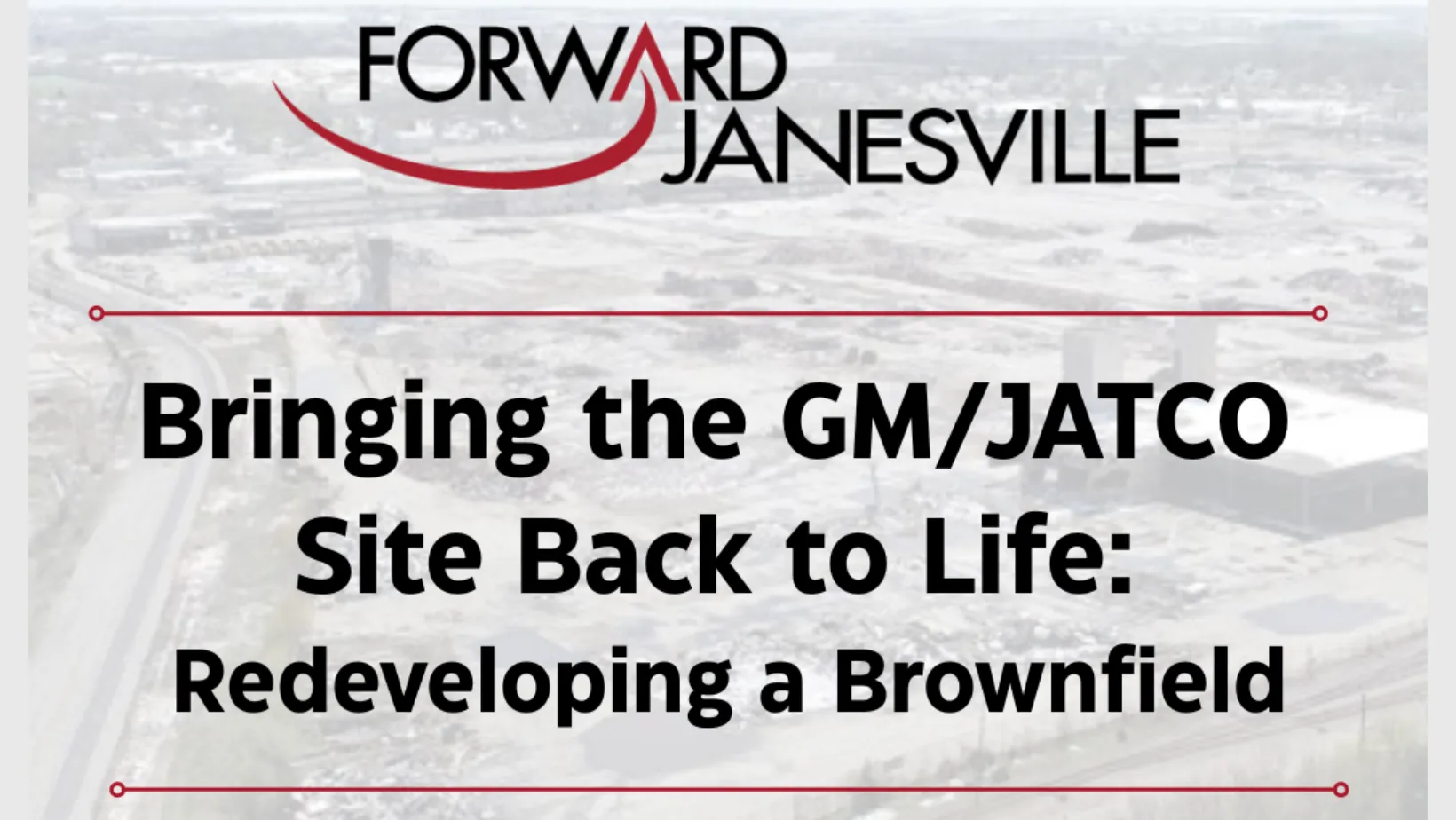 In late February, Forward Janesville hosted an event for our members, “Bringing the GM/JATCO Site Back to Life: What it Means to Redevelop a Brownfield Opportunity.” The event featured a panel of experts having a conversation about one of our community’s most important redevelopment opportunities: the former GM/JATCO site. Learn more and watch the event.