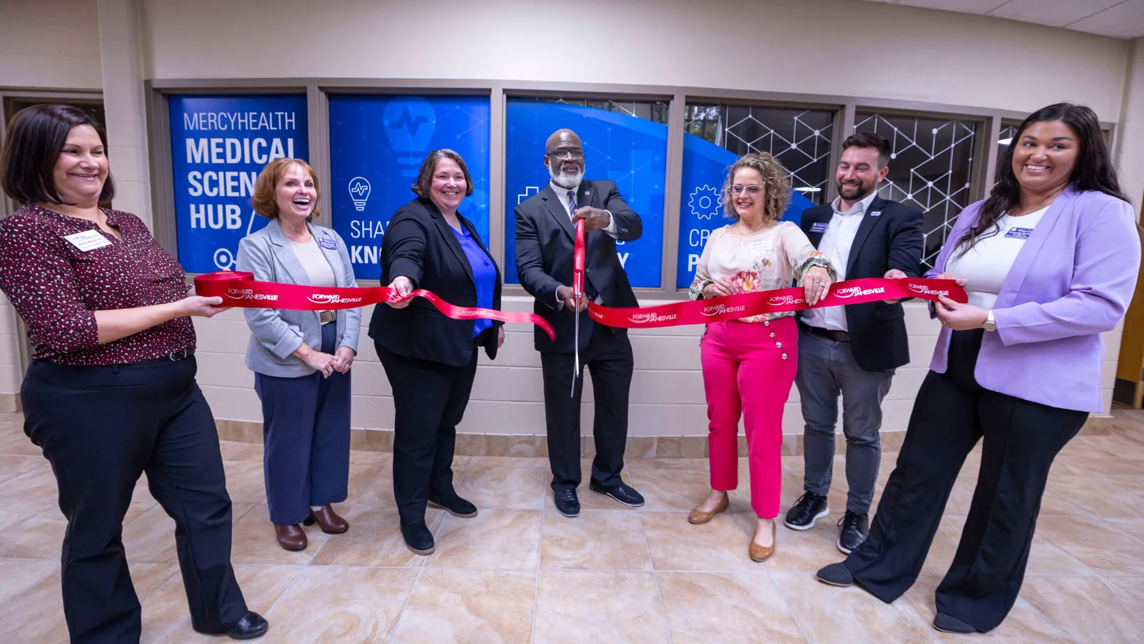 Forward Janesville helped celebrate a milestone moment for local workforce and economic development: the Ribbon Cutting of the new Mercyhealth Medical Sciences Hub at the University of Wisconsin–Whitewater at Rock County. This new collaboration between Mercyhealth, Edgewood University, and UW–W at Rock County opens the door for local students to earn a Bachelor of Science in Nursing (BSN) without leaving Rock County.